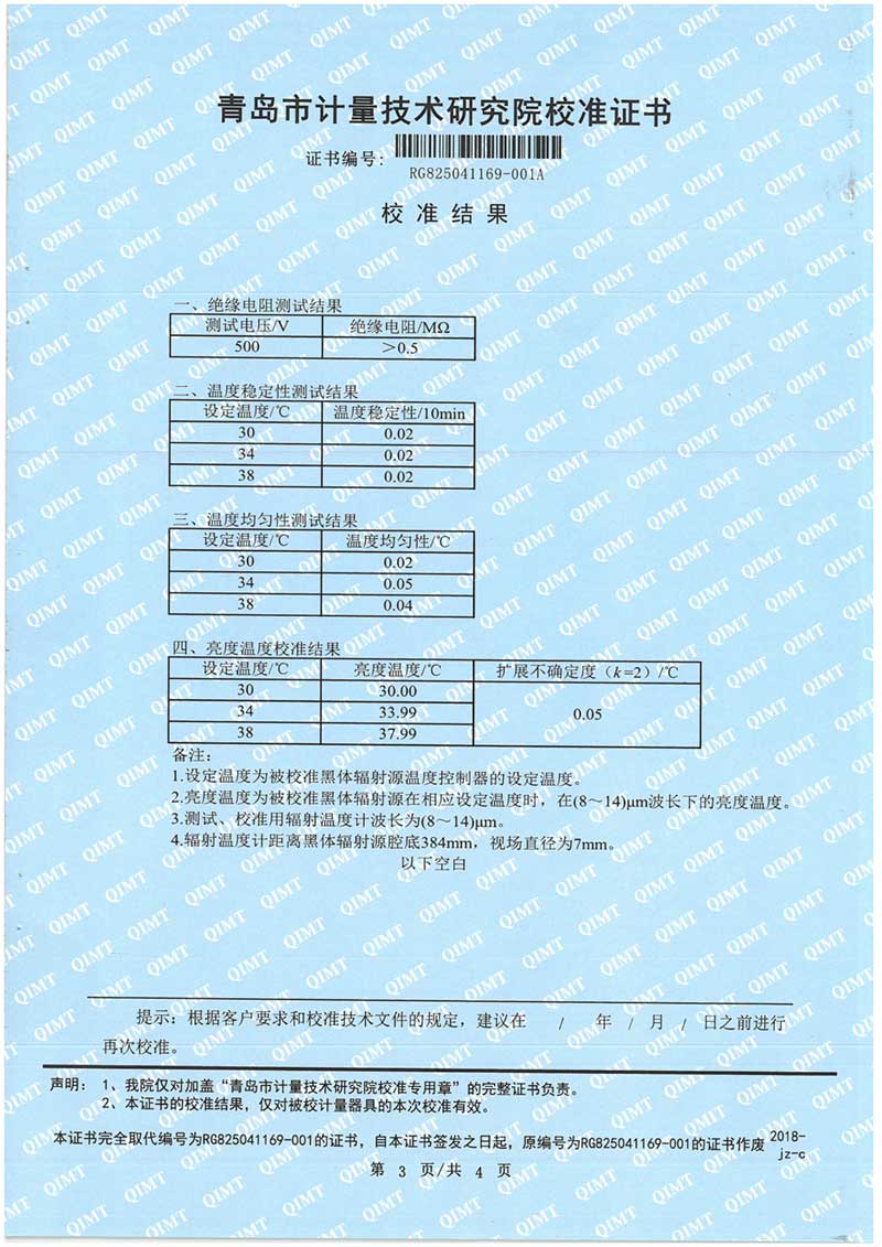 額溫計(jì)黑體空腔校準(zhǔn)證書