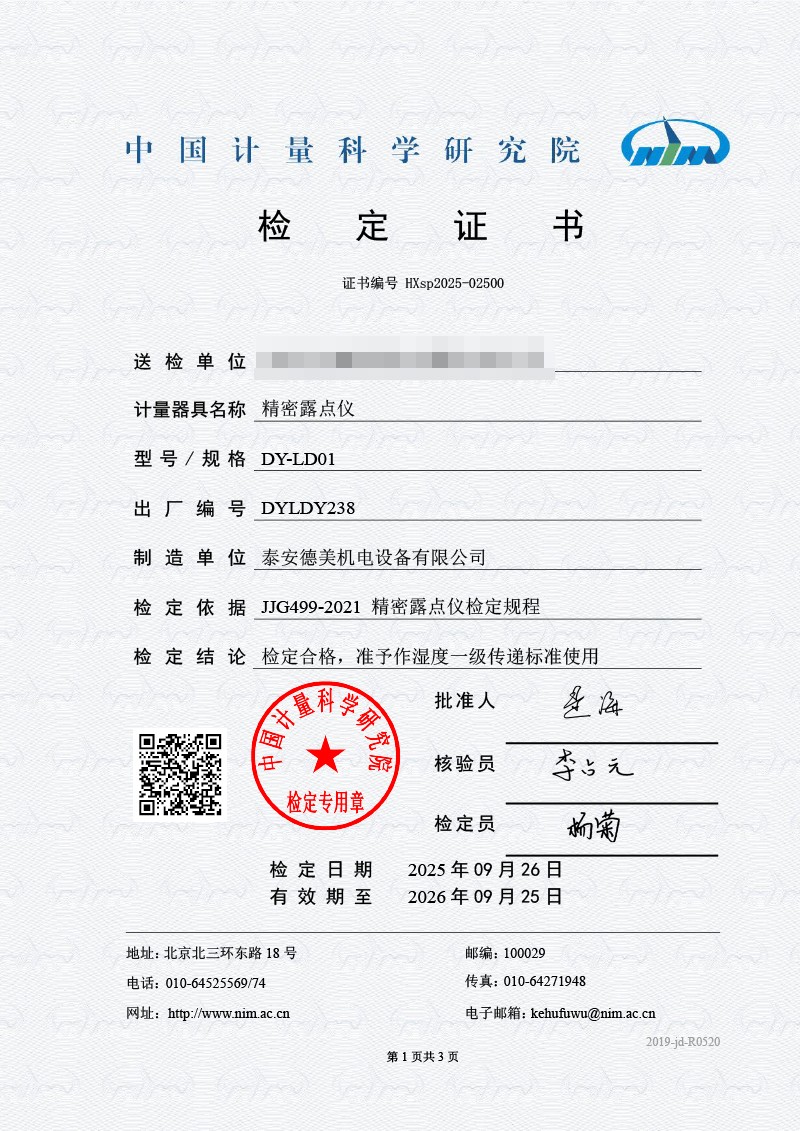 露點儀檢定證書 2025-9-29 本文被閱讀 918 次
