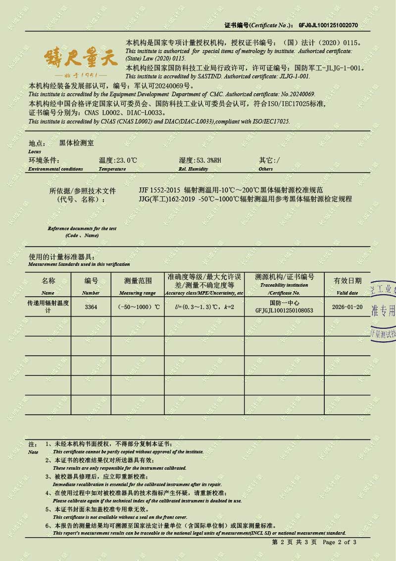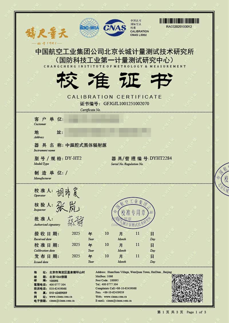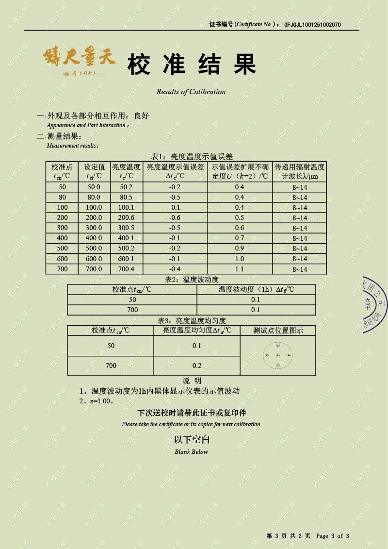 中溫腔式黑體輻射源(50-700℃)校準證書 2025-10-30 本文被閱讀 266 次