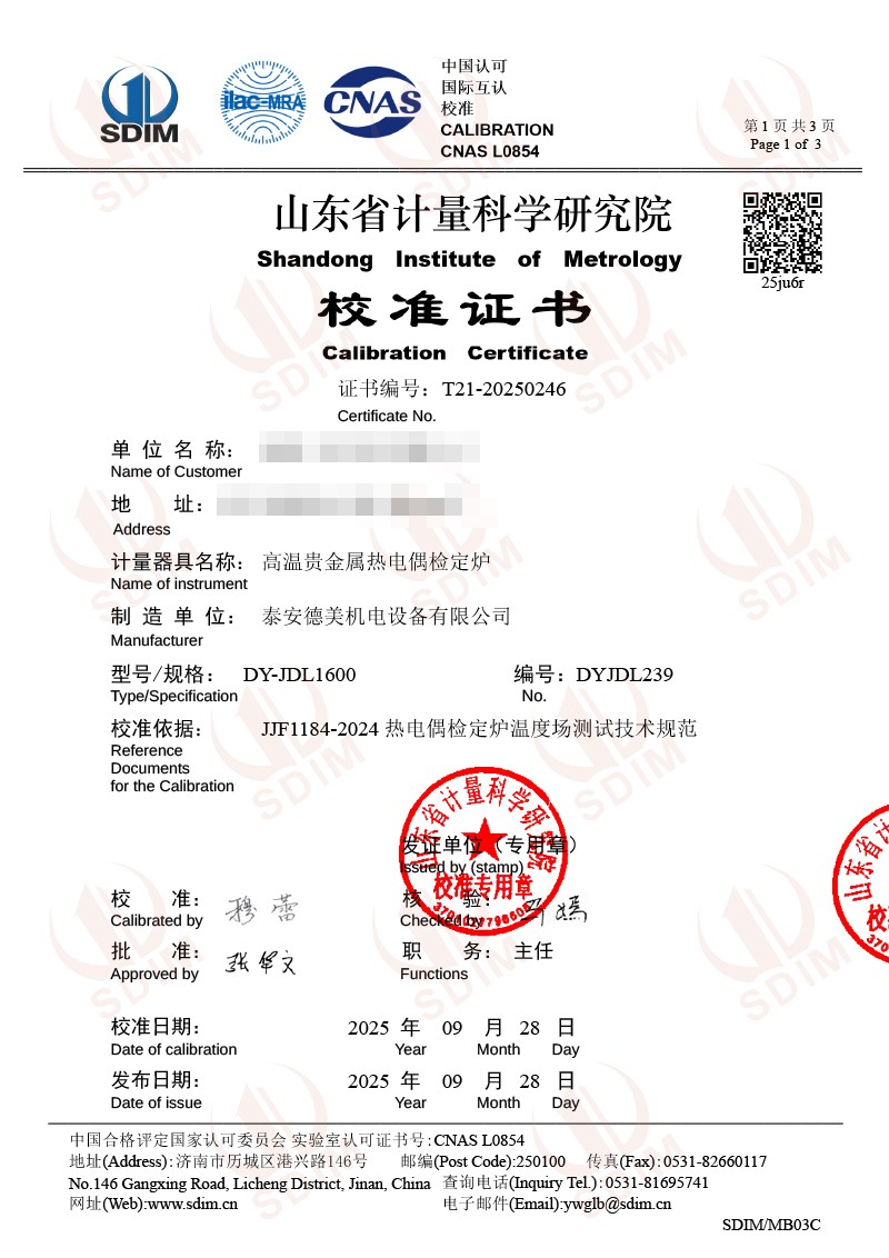 高溫貴金屬熱電偶檢定爐(800-1600℃)校準(zhǔn)證書 2025-10-14 本文被閱讀 55 次